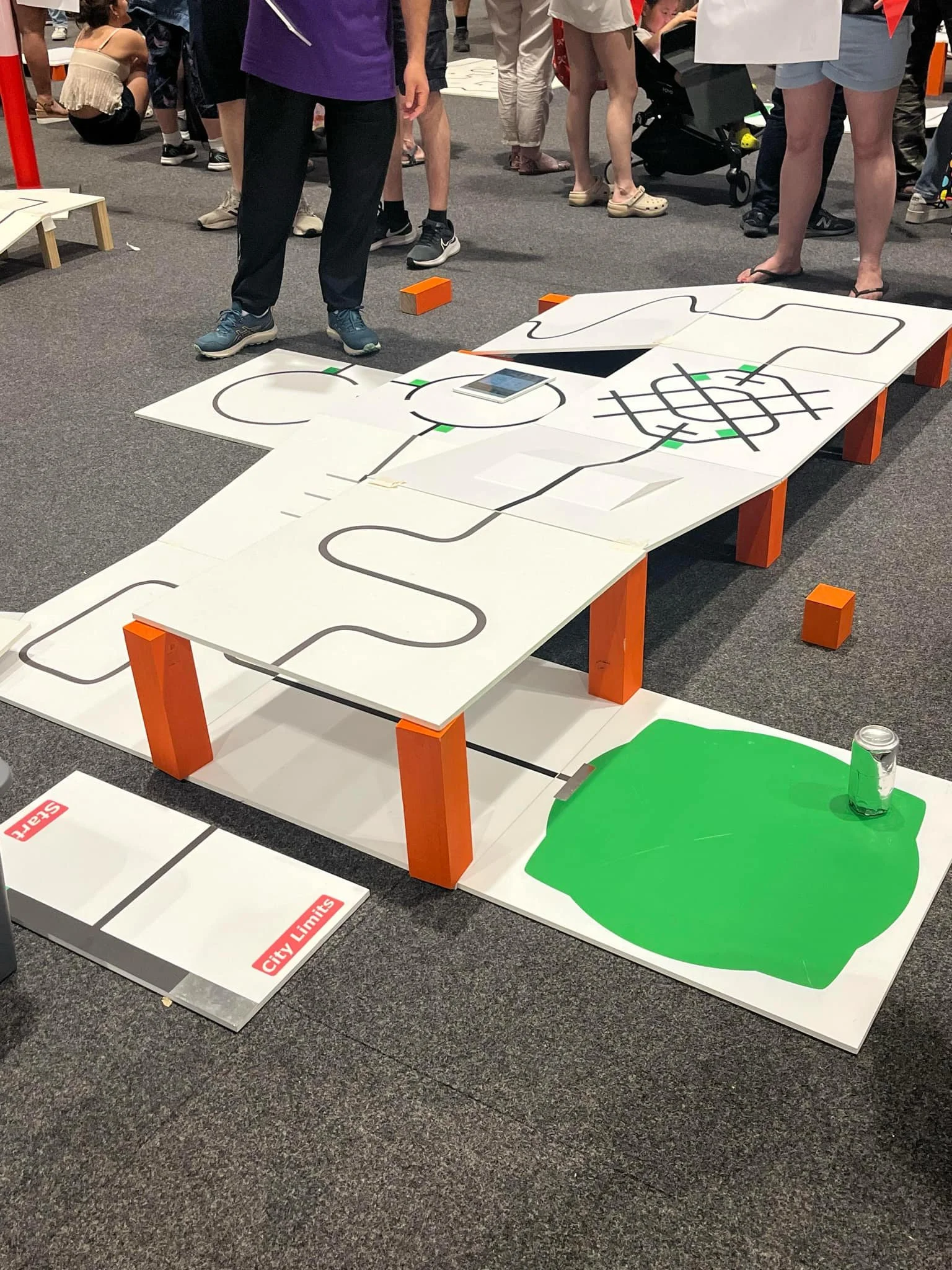 In a simulated disaster zone, robots must navigate a maze full of obstacles by following a line. Once through the maze, the robot needs to rescue the ‘survivors’ from a chemical spill before saving itself and finding its way back out of the maze.